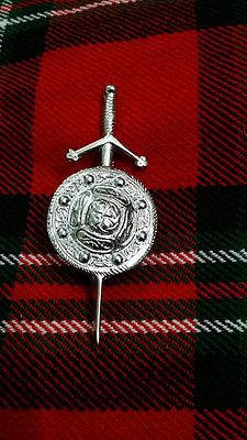 beautiful Polished Brass Chrome Finish High Quality Kilt Pin with Stag Head Sword