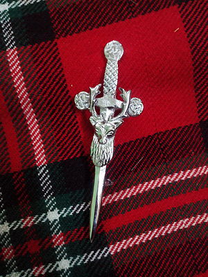 TC New Stag Head Sword kilt pin Chrome Finish/Celtic kilt Pins stag head 4"